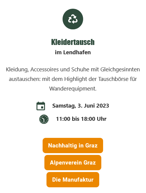 Gemeinsam mit „Nachhaltig in Graz“ veranstalten wir einen Kleidertausch im Lendhafen