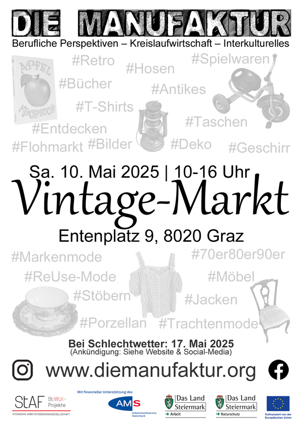 Save the date! Verfasst vondiemanufakturgraz21. April 202529. April 2025Veröffentlicht inAllgemein Weitere Infos siehe Facebook-Event >> Teilen mit: Auf X teilen (Wird in neuem Fenster geöffnet) X Auf Facebook teilen (Wird in neuem Fenster geöffnet) Facebook Gefällt mir Wird geladen … Ähnliche Beiträge