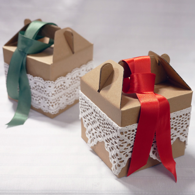 Schnell verpackt und wiederverwendbar: So sehen weise Weihnachten aus! Mit der dekorativen Spitze und Bändern in zwei Farben eine stimmungsvolle Alternative zu Einweg-Verpackungen.