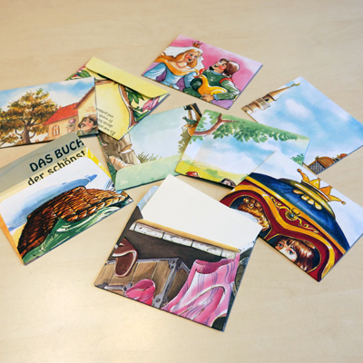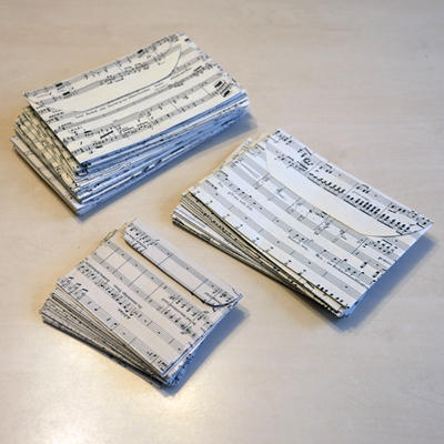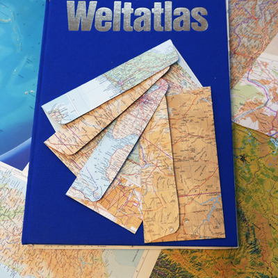 Das Besondere zelebrieren: Ausgemusterte Bücher, Karten oder Notenblätter verwandelt unsere Upcycling-Werkstatt in außergewöhnliche Hüllen für deine Briefe und Grußkarten.