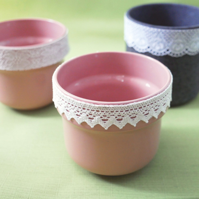 Wolle, Garne und Spitzen-Bänder, z.B. als Deko für Blumentöpfe oder andere DIY-Ideen