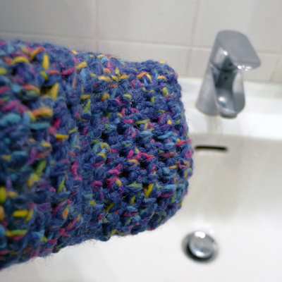 Luftig gehäkelt trocknet er an der Schlaufe aufgehängt schnell wieder. In erfrischend bunten Farben und verschiedenen Größen erhältlich.